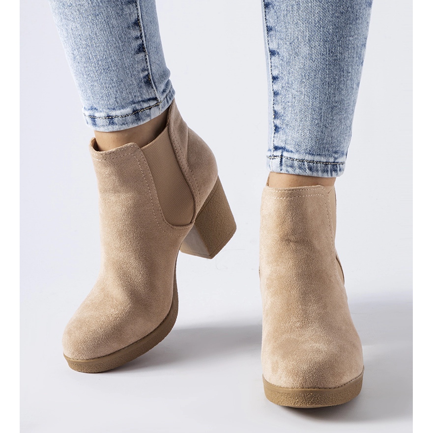 Inna marka Ciemnobeżowe wsuwane botki na słupku Trevano beżowy