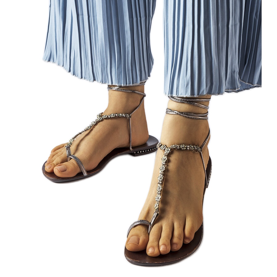 - Model: Ciemnoszare sandałki z cyrkoniami 070-2