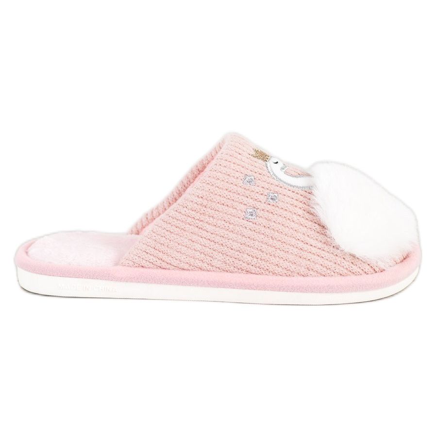Bona Bona Ciepłe Kapcie Z Aplikacją białe różowe