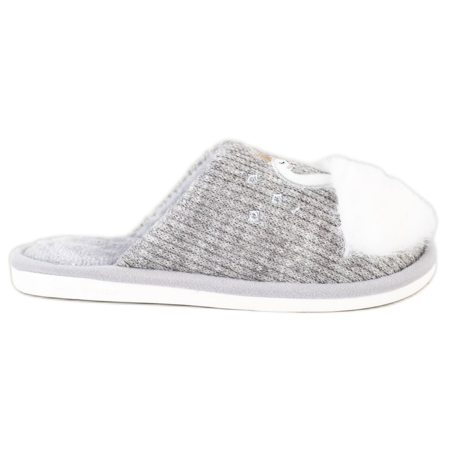 Bona Bona Ciepłe Kapcie Z Aplikacją białe szare
