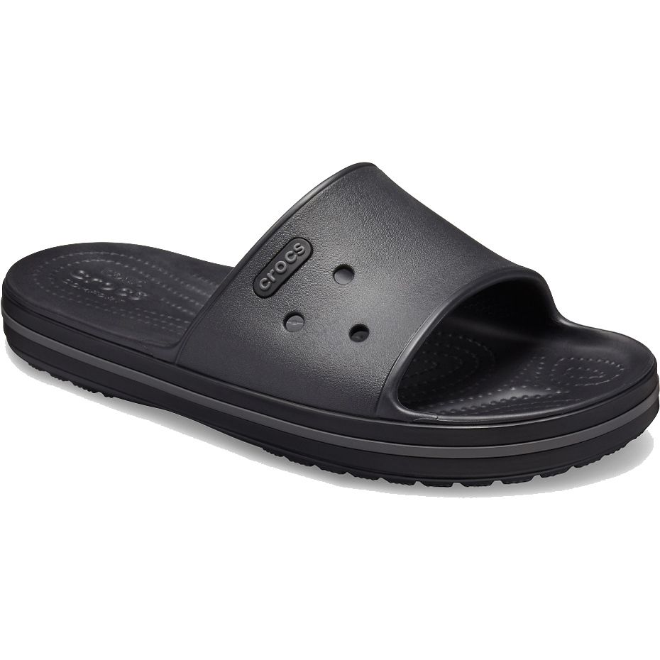 Uniwersalne, lekkie klapki Crocs Crocband III Slide to praktyczne obuwie uniseks, które sprawdzi się na co dzień, na plaży, przy basenie oraz w domu. Prosty, ponadczasowy design w kolorze czarnym łączy się tu z wygodą znaną z marki Crocs.