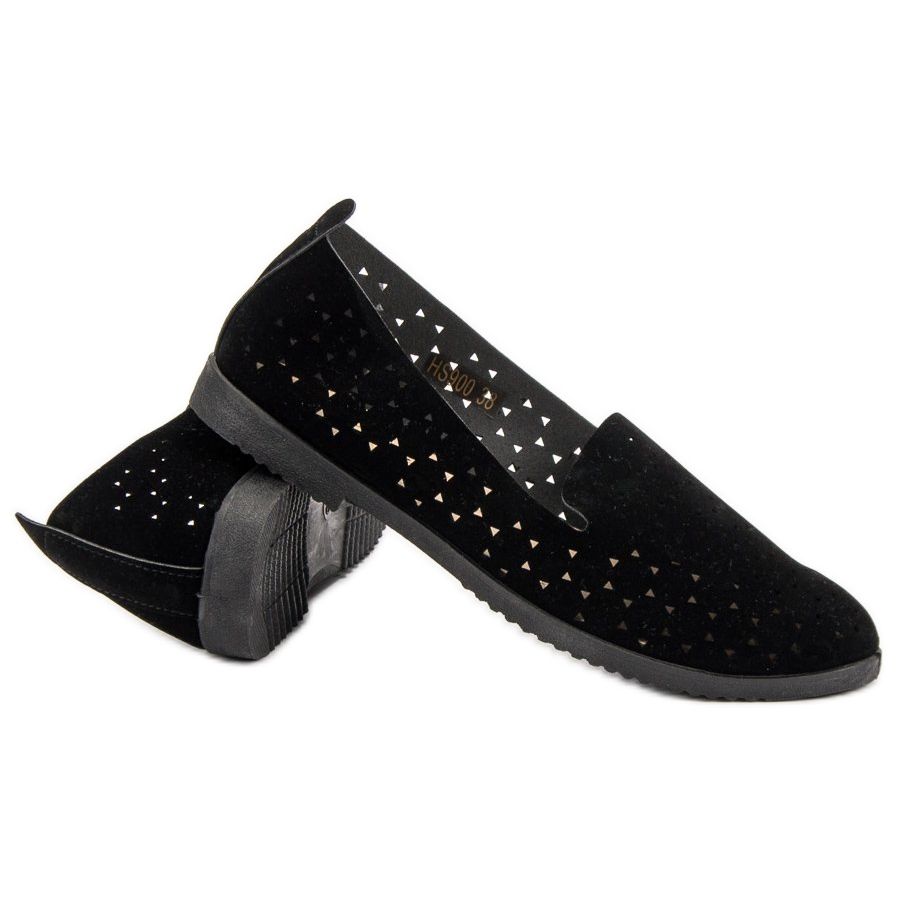 Czarne ażurowe lordsy marki ButyModne to stylowy i modny wybór dla każdej kobiety, która ceni sobie komfort oraz unikatowy design. Ich ażurowa konstrukcja z ozdobnymi wycięciami imitującymi kwiaty nadaje im kobiecego charakteru i sprawia, że wyróżniają się na tle innych modeli.