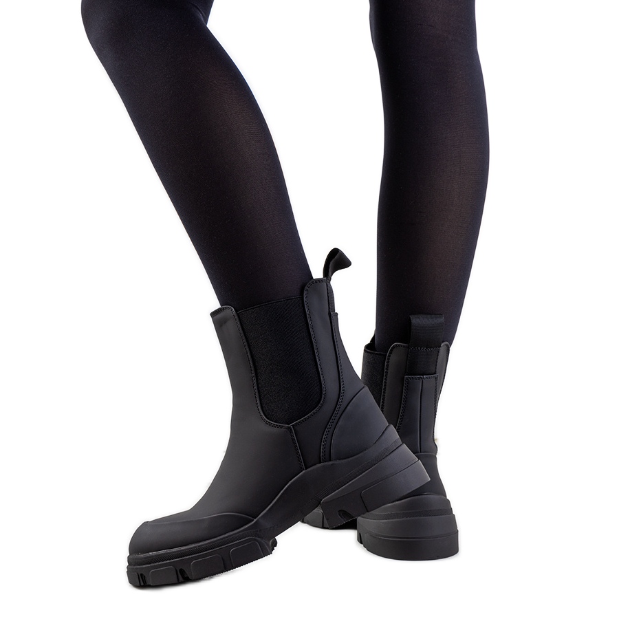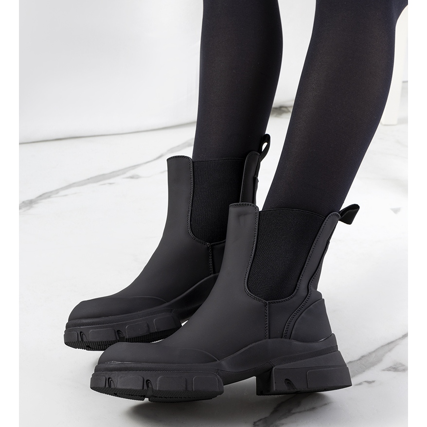 Botki wykonane są z wysokiej jakości nubuku syntetycznego, co zapewnia trwałość oraz modny wygląd. Dodatkowo, lekkie ocieplenie sprawia, że świetnie sprawdzą się w chłodniejsze dni. Delikatne przeszycia dodają im charakteru, a klasyczna czerń czyni je uniwersalnym elementem wielu stylizacji.