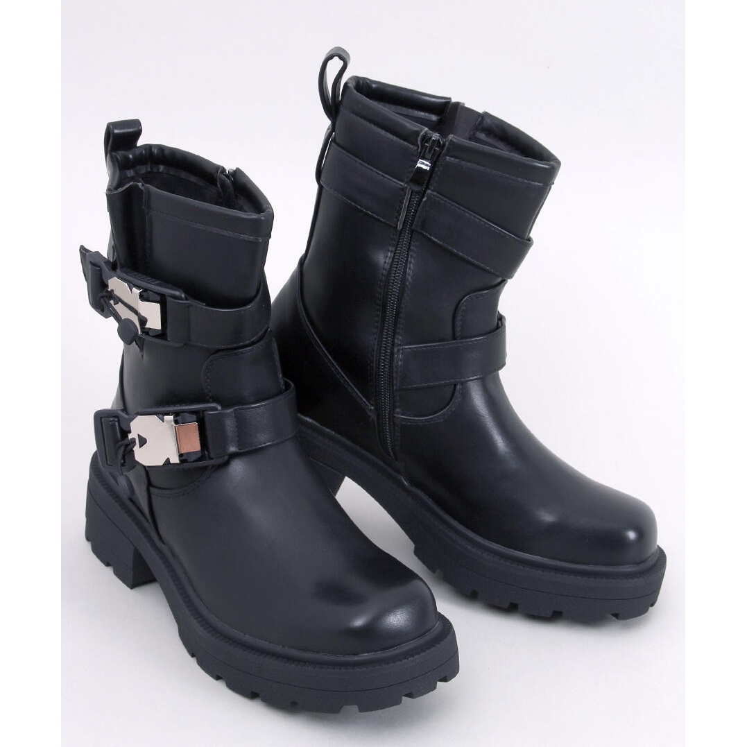 Inna marka Czarne Botki Damskie militarne z ozdobą