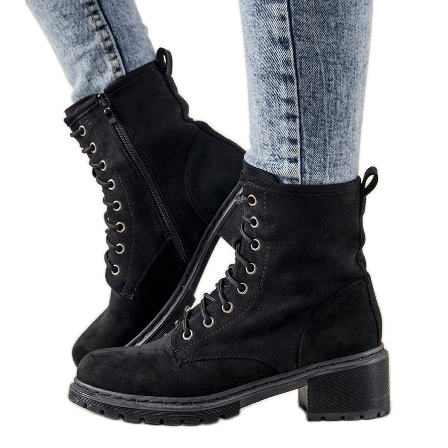 Eleganckie i uniwersalne botki Must Have wykonano z zamszowej skóry ekologicznej w ponadczasowej czerni. Projekt łączy modny, traperkowy fason podeszwy z wygodą codziennego użytkowania — to model idealny na sezon jesienny i zimowy, który łatwo wkomponujesz w wiele stylizacji.