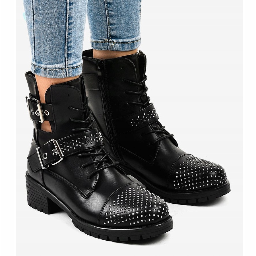 Szczegóły: Czarne botki damskie na masywnej podeszwie M257