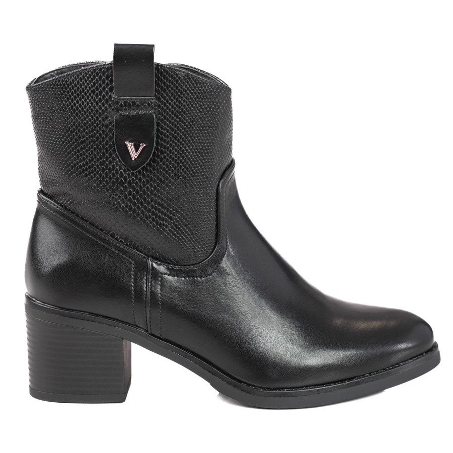 S. BARSKI Czarne botki damskie na niskim słupku S. Barski
