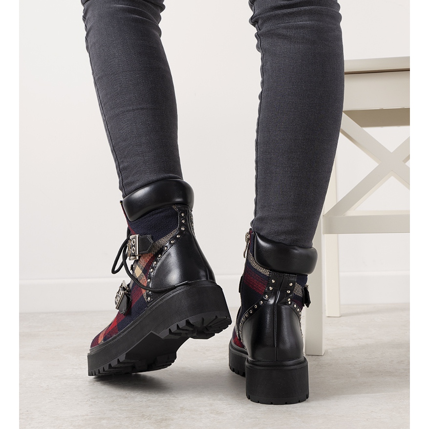 Szczegóły: Czarne botki damskie w kratkę Vevien