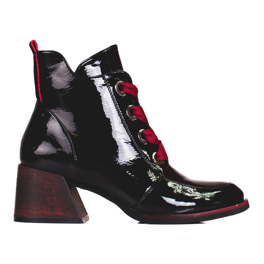Szczegóły: Czarne botki damskie z czerwonym sznurowaniem Vinceza