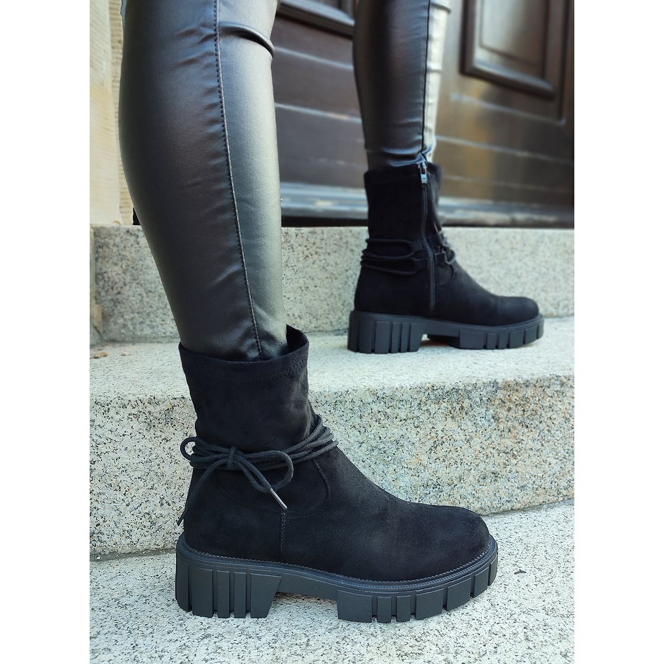Inna marka Czarne botki damskie z elastyczną cholewką