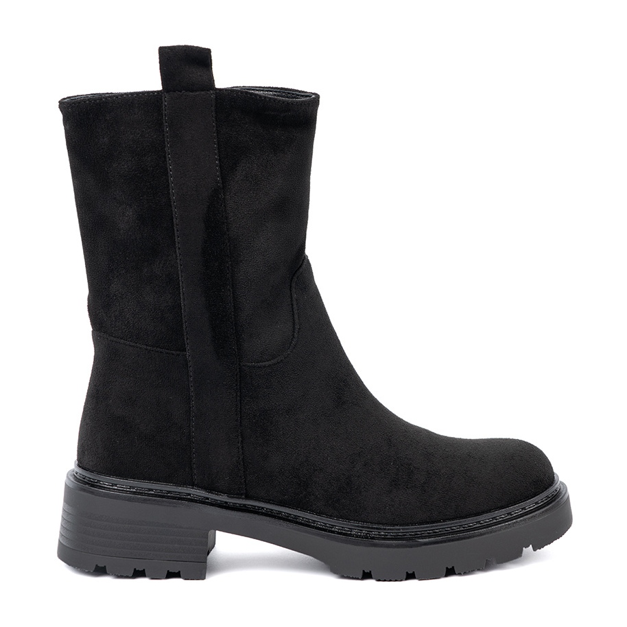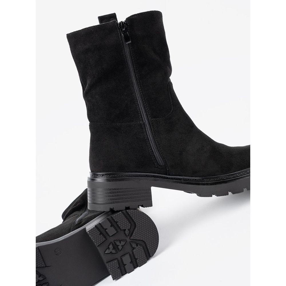 Szczegóły: Shelvt Czarne botki na grubej podeszwie z cholewką za kostkę