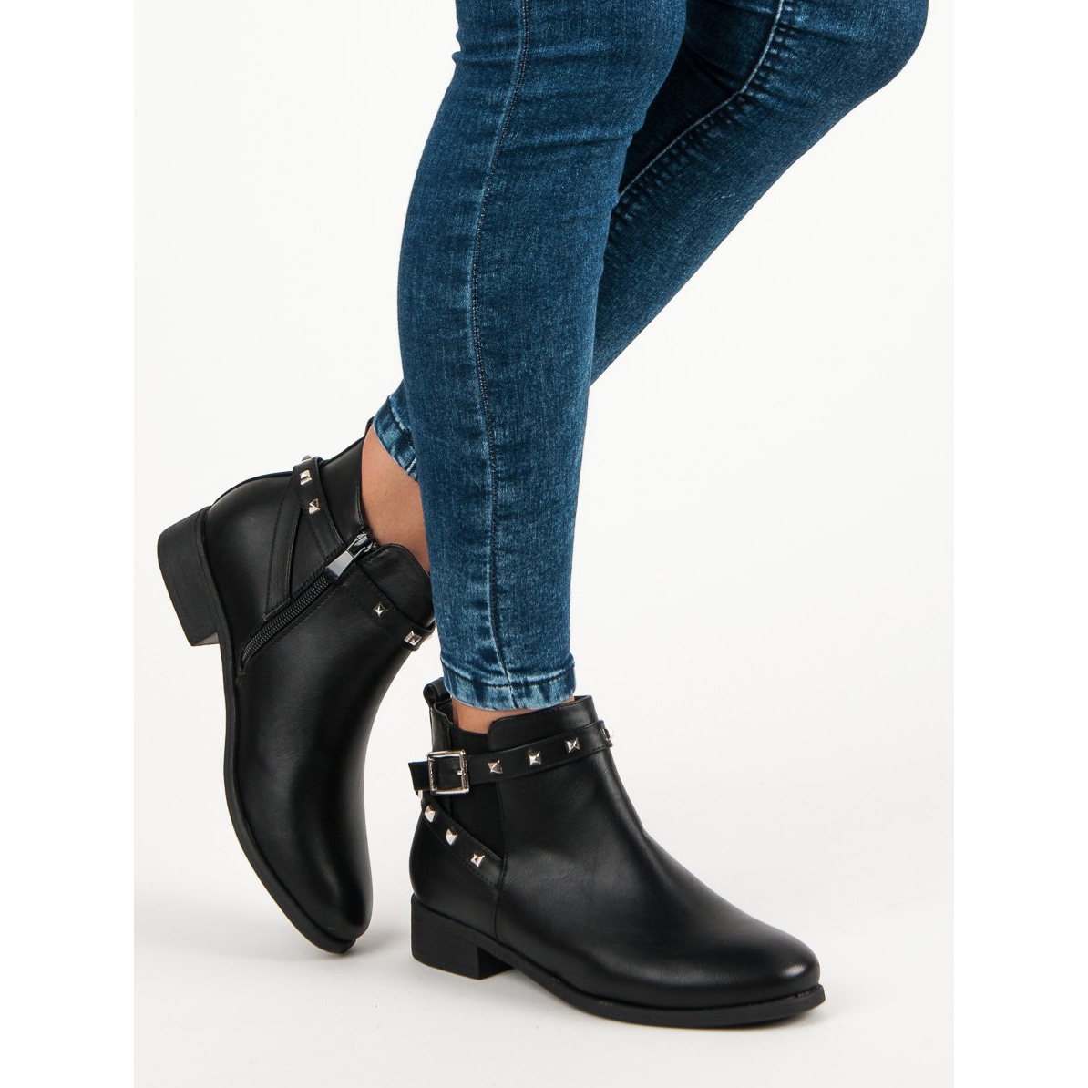 Czarny kolor, ozdobna sprzączka oraz dżety nadają botkom niepowtarzalnego charakteru, który doskonale wpisuje się w aktualne trendy. Zapięcie na zamek z boku oraz elastyczne gumki sprawiają, że zakładanie i zdejmowanie butów jest komfortowe i szybkie.
