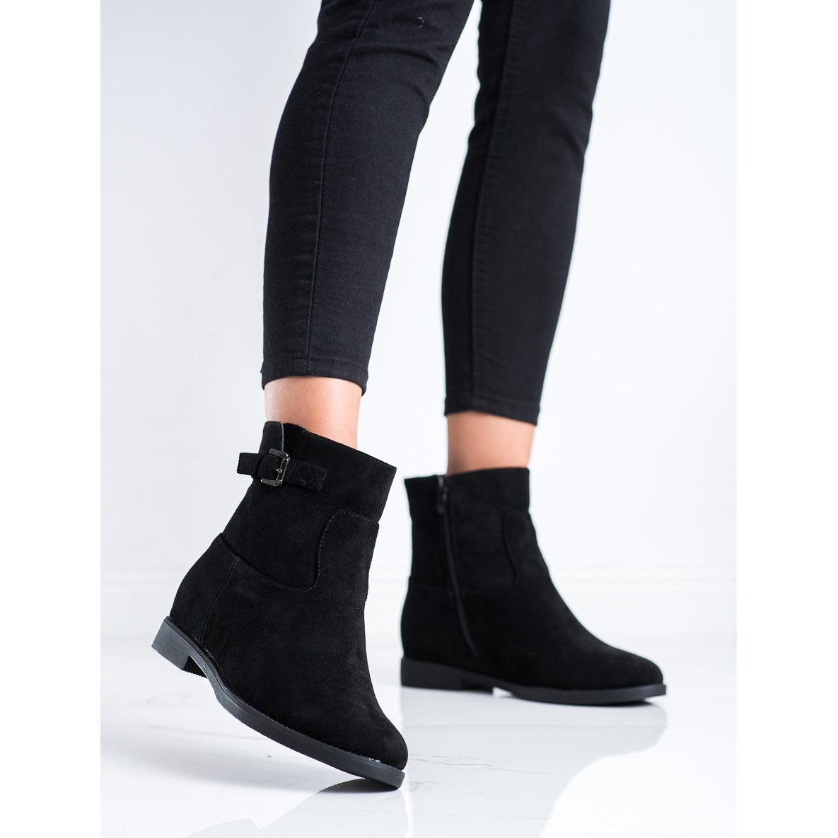 Odkryj elegancję i wygodę noszenia z botkami na koturnie J. Star, które doskonale wpisują się w casualowy styl. Te czarne botki, wykonane z wysokiej jakości ekologicznego zamszu, to idealna propozycja na sezon jesień/zima.