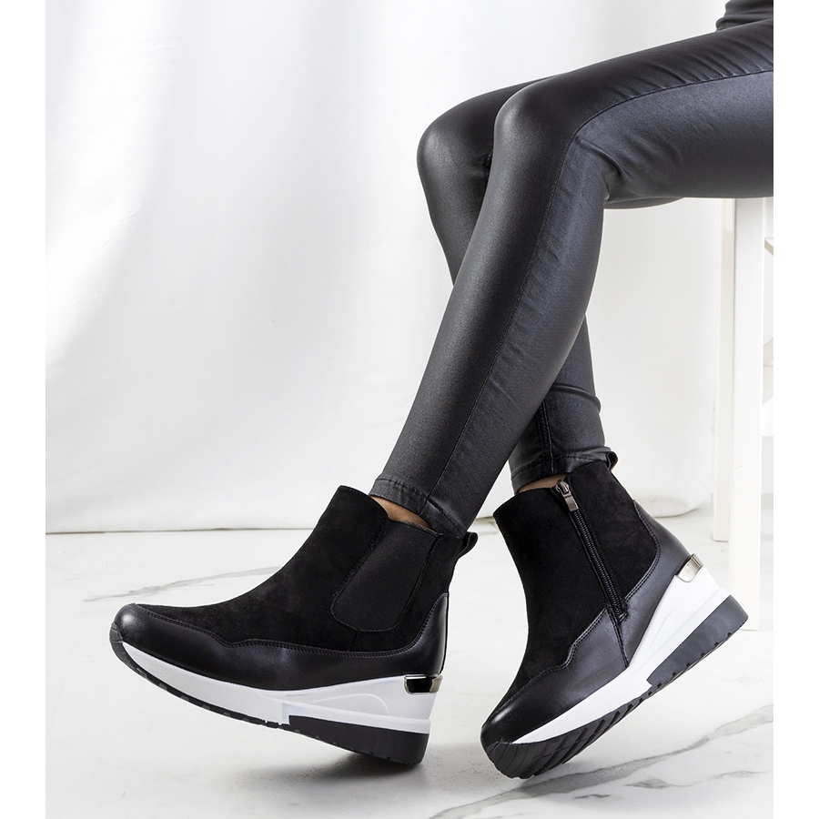 BM BM Czarne botki na koturnie ocieplane Arkala