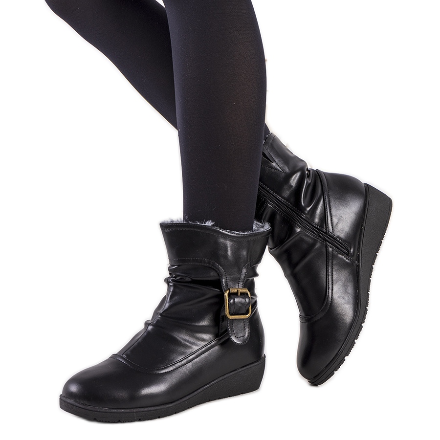 Inna marka Czarne botki na koturnie ze sprzączką Slater