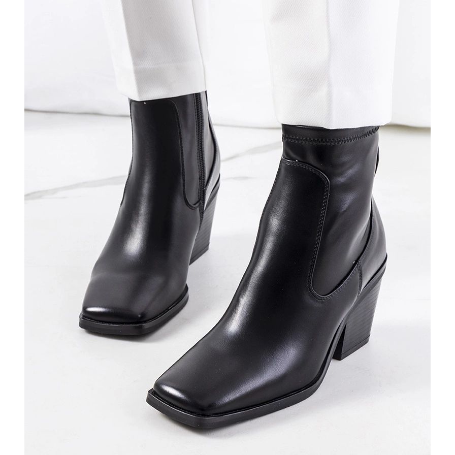 Czarne botki na obcasie Panucci — elegancja i wygoda w jednym