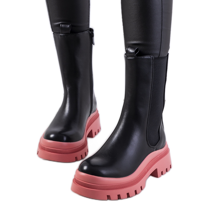 Inna marka Czarne botki na różowej platformie Ruket