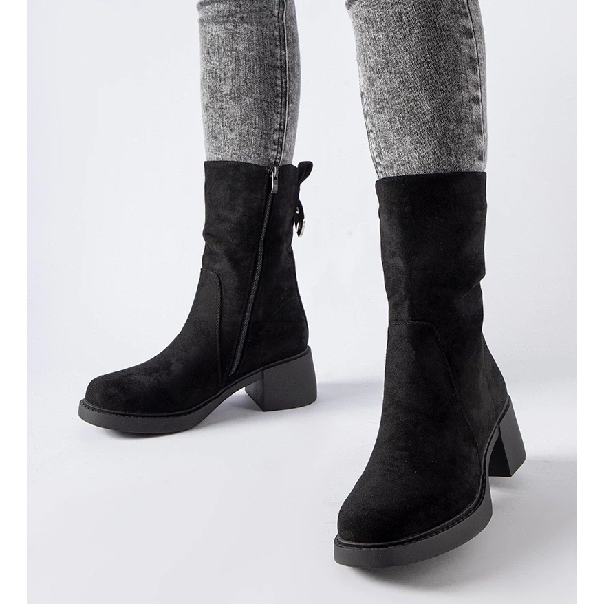 Szczegóły: D/CEO Czarne botki na słupku eko-zamsz Agordino