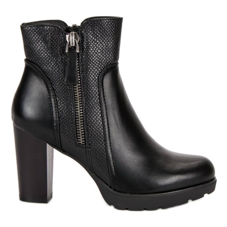 Czarny kolor botków to klasyka, która nigdy nie wychodzi z mody i doskonale komponuje się zarówno z eleganckimi, jak i casualowymi stylizacjami. Dzięki ich oryginalnym detalom, takim jak zamek w stylu srebrnym czy wstawka imitująca skórę węża, każda kobieta poczuje się w nich wyjątkowo.