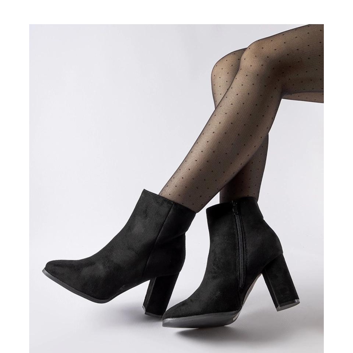 Czarne botki na słupku to kluczowy element garderoby każdej nowoczesnej kobiety, łączący w sobie wyjątkowy styl oraz komfort noszenia. Wykonane z wysokiej jakości skóry ekologicznej zamszowej, te eleganckie buty zachwycają swoim minimalistycznym designem, który doskonale wpisuje się w obecne trendy. Wydłużony migdałowy nosek dodaje im szyku, a podkreślona kostka sprawia, że nogi wyglądają zgrabnie i smukło.