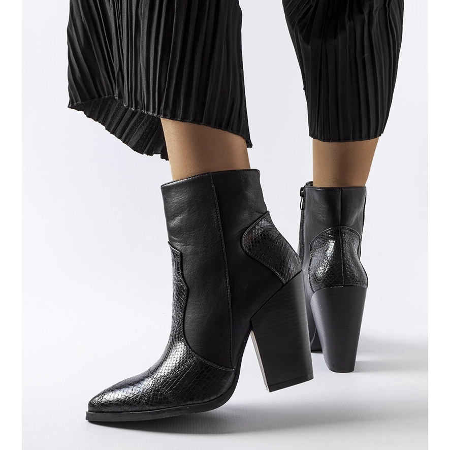 Czarne botki na słupku Kensley (model HD055-100) — elegancja w kowbojskim wydaniu