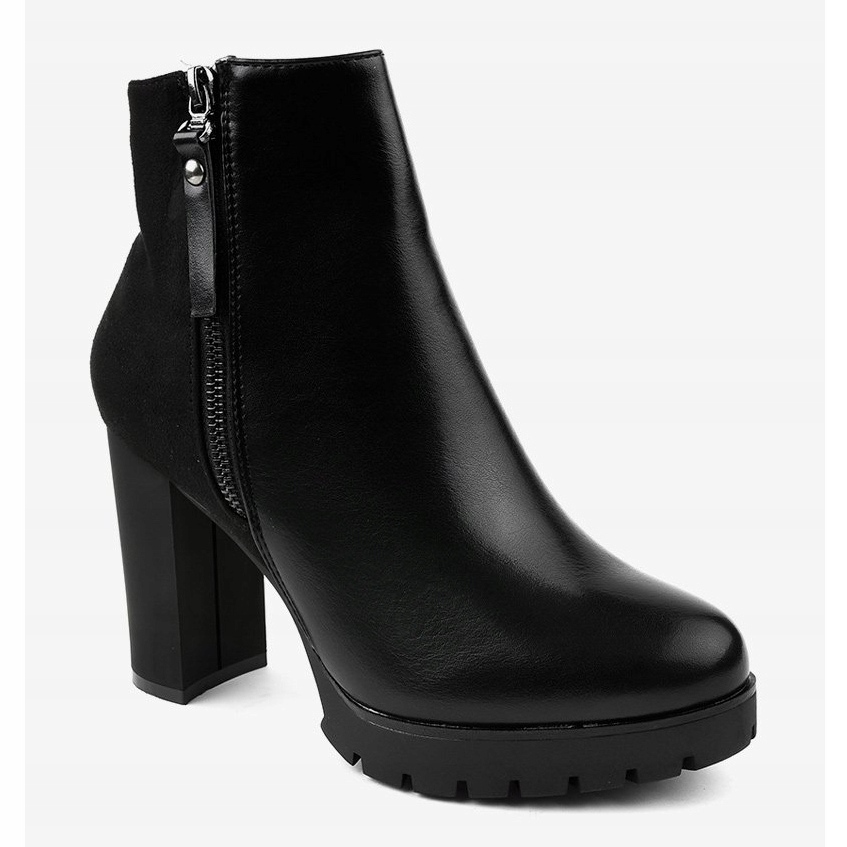 Szczegóły: Czarne botki na słupku ocieplane BK-18