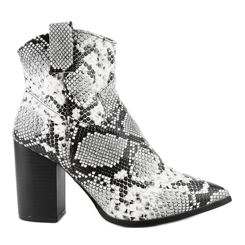 Szczegóły: Czarne botki na słupku snake YL20-1 białe szare