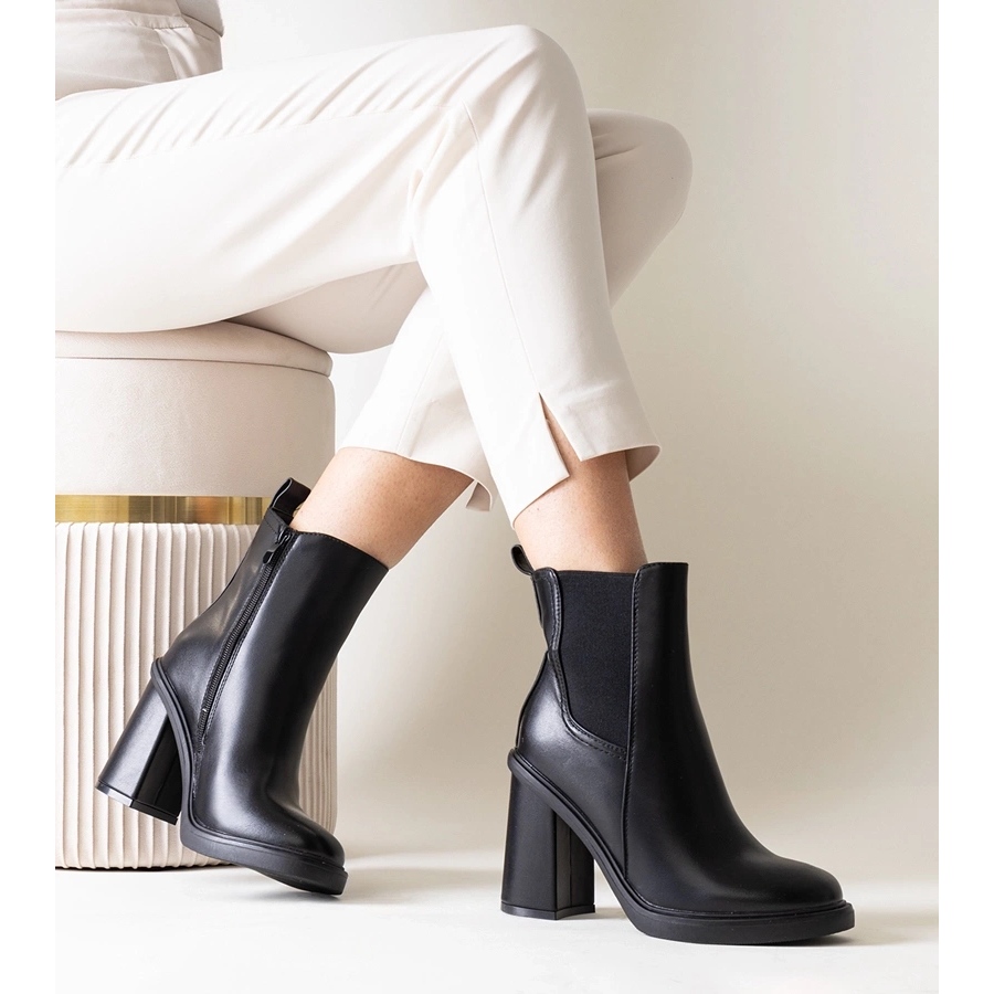 Inna marka Czarne botki na słupku z eko skóry Almase