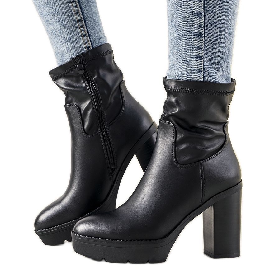 Szczegóły: Czarne botki na słupku z elastycznej tkaniny Quality