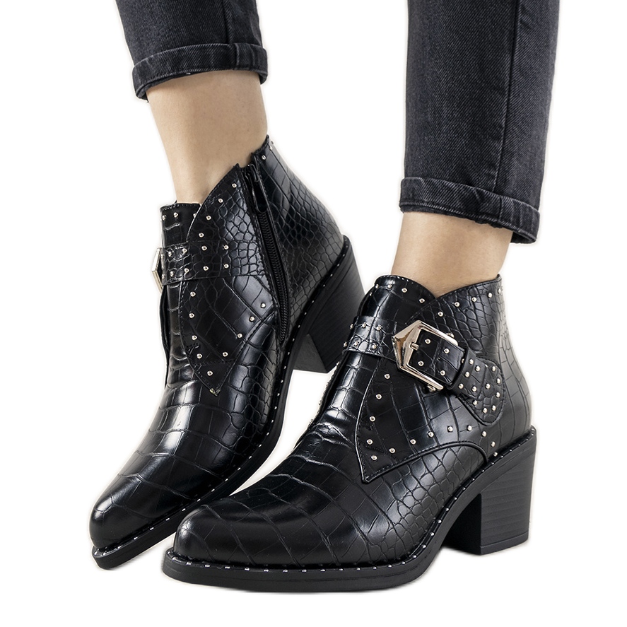 Szczegóły: Czarne botki na słupku z klamrą Montiana