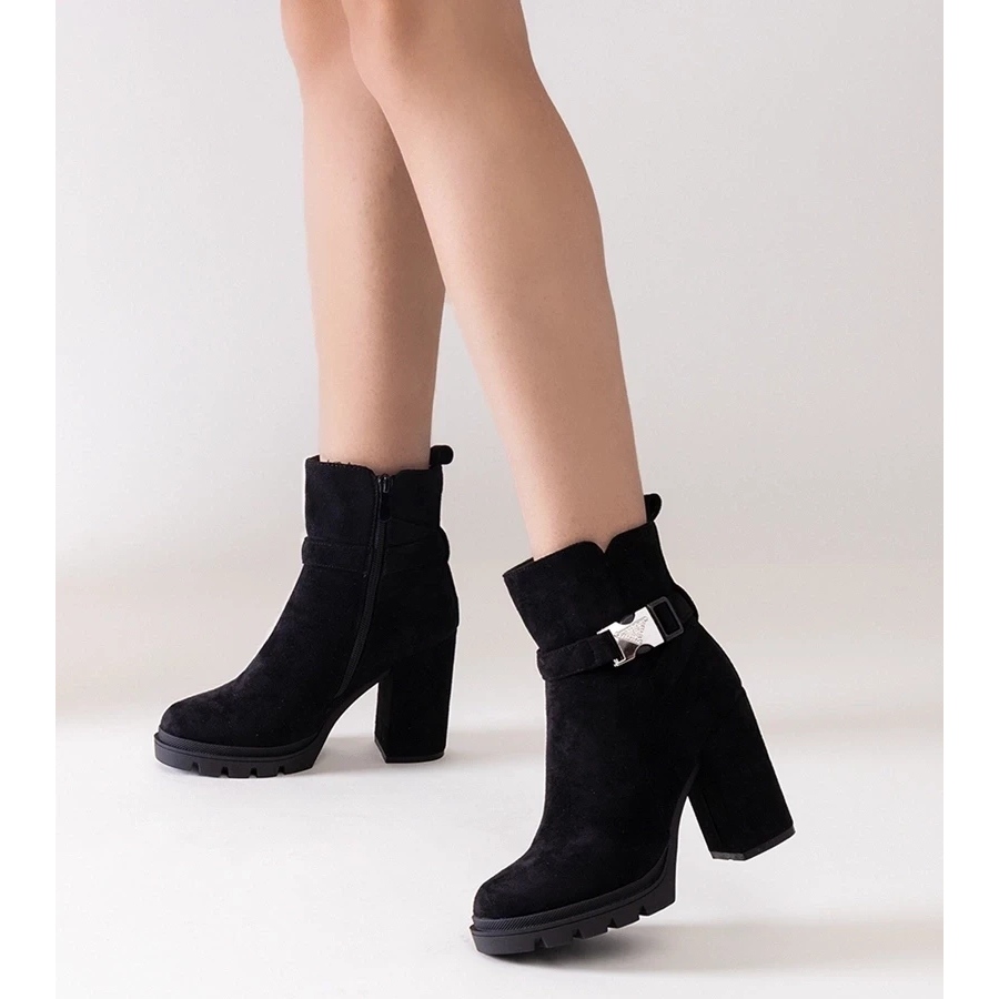 D/CEO D/CEO Czarne botki na słupku zdobione klamerką Torhia