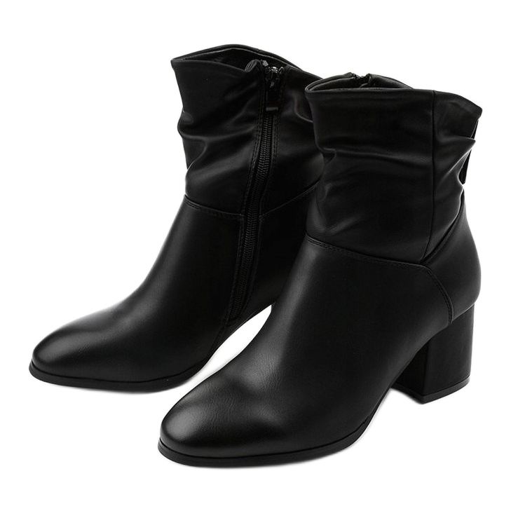 Inna marka Czarne botki na suwak na słupku ekoskóra Rhodes
