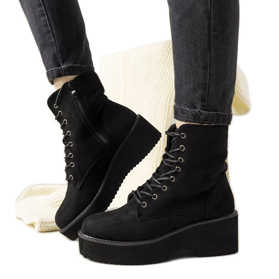 Szczegóły: Czarne botki na wysokiej podeszwie Dexter