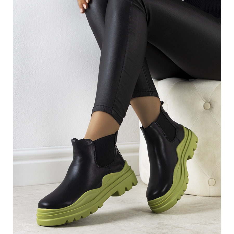 Czarne botki na zielonej platformie Tausel (model 2115-2) — modny akcent do każdej stylizacji