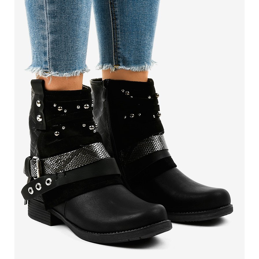 Inna marka Czarne botki ocieplane bogato zdobione A-351