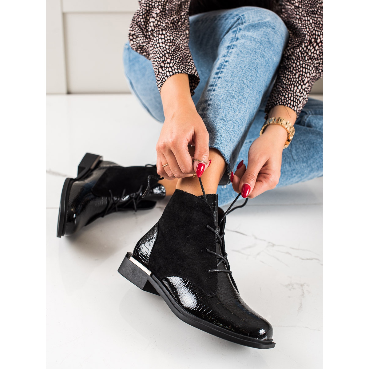 Wykonane z wysokiej jakości materiałów, botki posiadają wierzch z ekologicznej skóry, z dodatkiem imitacji zamszu, co nadaje im wyjątkowego charakteru. Oryginalny wzór zwierzęcy przyciąga uwagę, a czarny kolor sprawia, że są niezwykle uniwersalne.