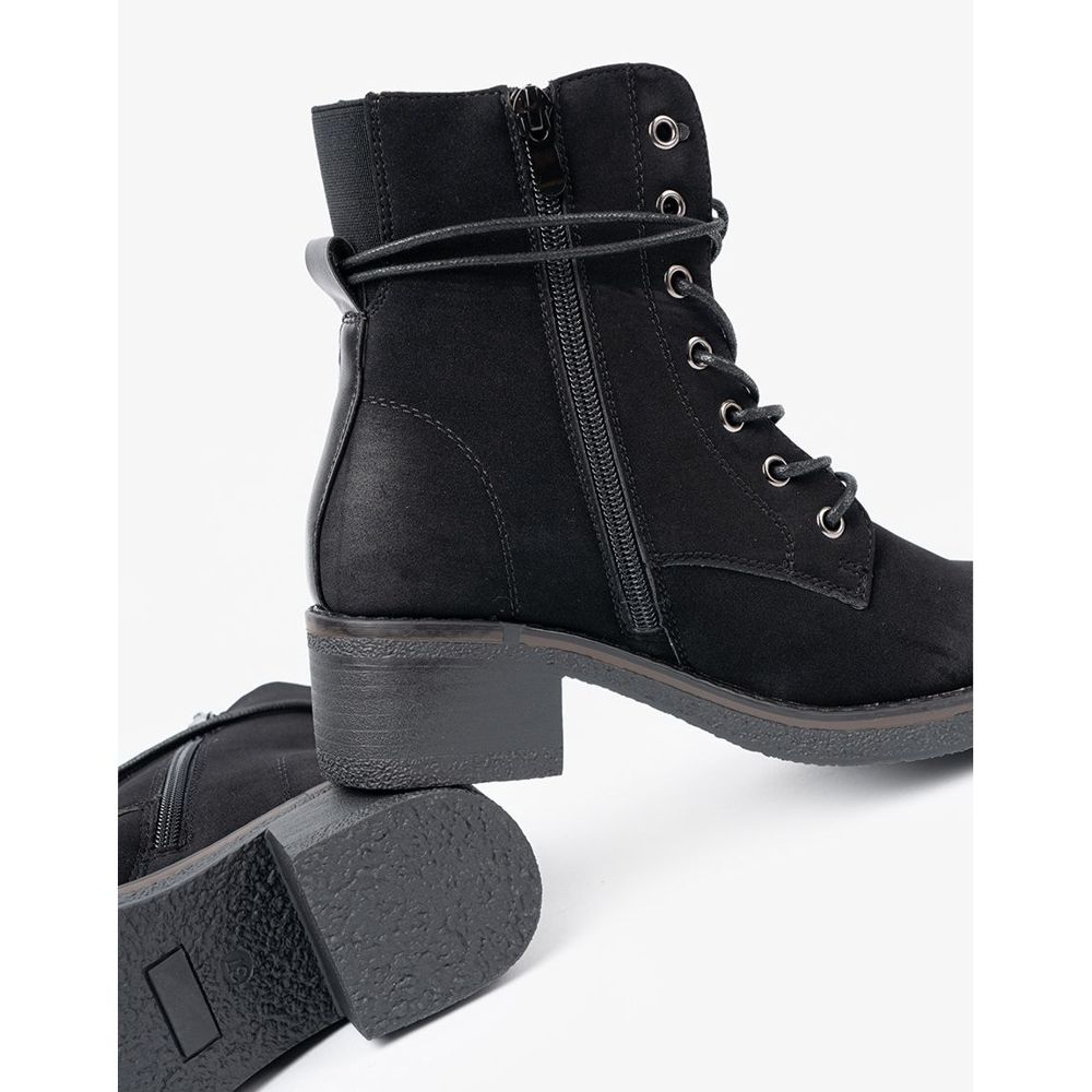 Szczegóły: Shelvt Czarne botki sznurowane na niskim obcasie
