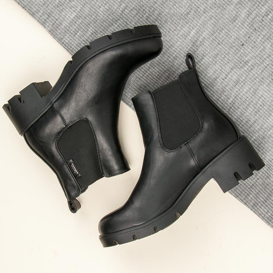 Delikatna platforma i płaski obcas o wysokości około 5 cm sprawiają, że są one komfortowe nawet podczas długiego noszenia. Wnętrze botków ocieplone jest kocem obuwniczym, co zapewnia ciepło w chłodniejsze dni. Zabudowany zapiętek oraz charakterystyczna podeszwa z protektorem podkreślają casualowy charakter obuwia, sprawiając, że idealnie nadają się do codziennych stylizacji.