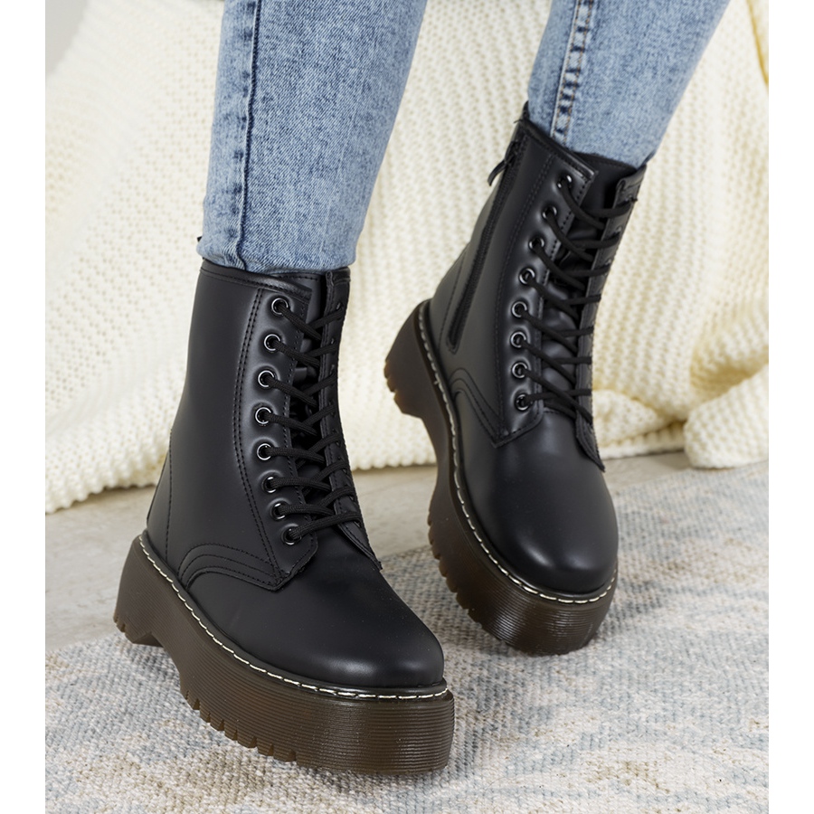 Odkryj styl i wygodę z czarnymi botkami typu glany Lebel, które będą idealnym uzupełnieniem Twojej jesienno-zimowej garderoby. Te eleganckie buty damskie, wykonane z wysokiej jakości skóry ekologicznej w matowym wykończeniu, łączą w sobie nowoczesny design z funkcjonalnością.