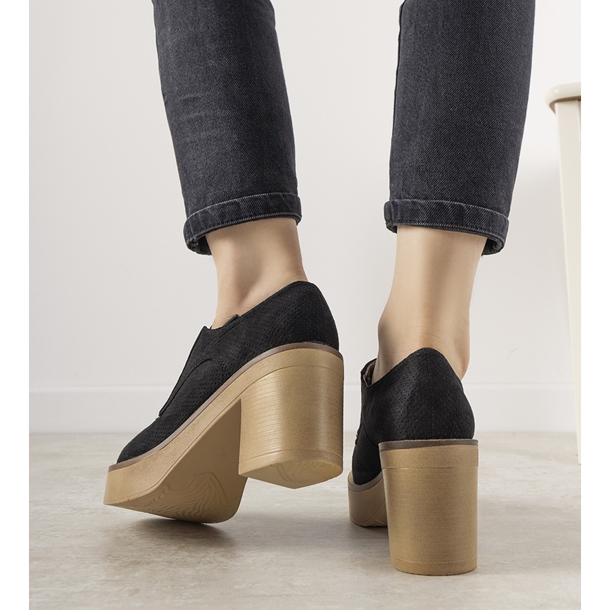 Szczegóły: Czarne botki w stylu półbutów na słupku Cascio