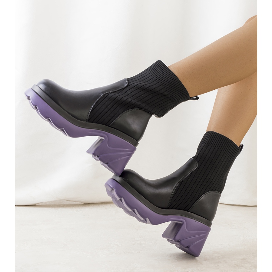 Czarne botki Tomlin z fioletową podeszwą — model Q747