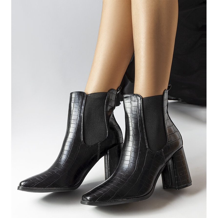 Inna marka Czarne botki z imitacją skóry krokodyla Weigall