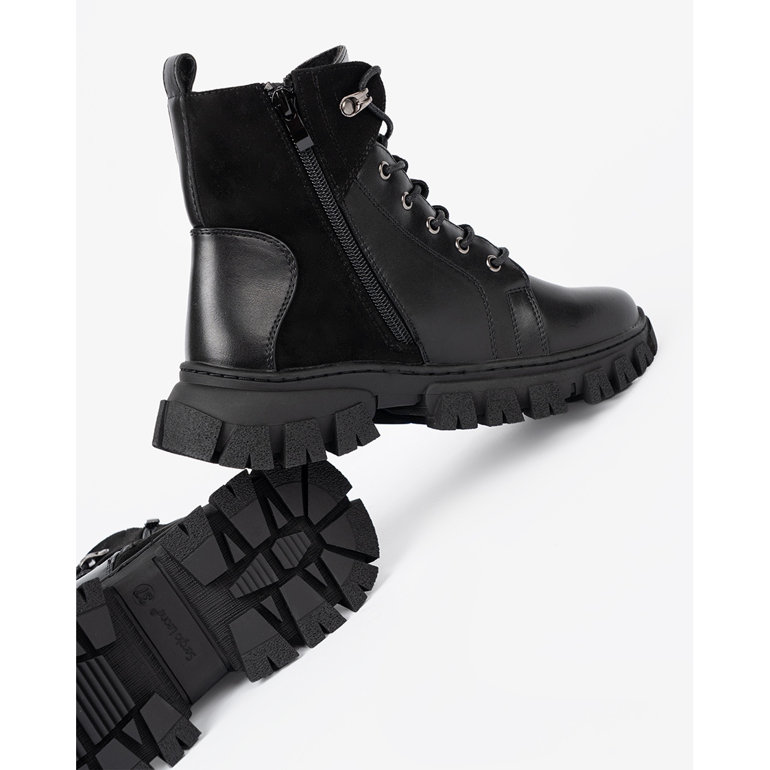 Sergio Leone Czarne botki z masywną podeszwą i suwakiem Sergio Leone