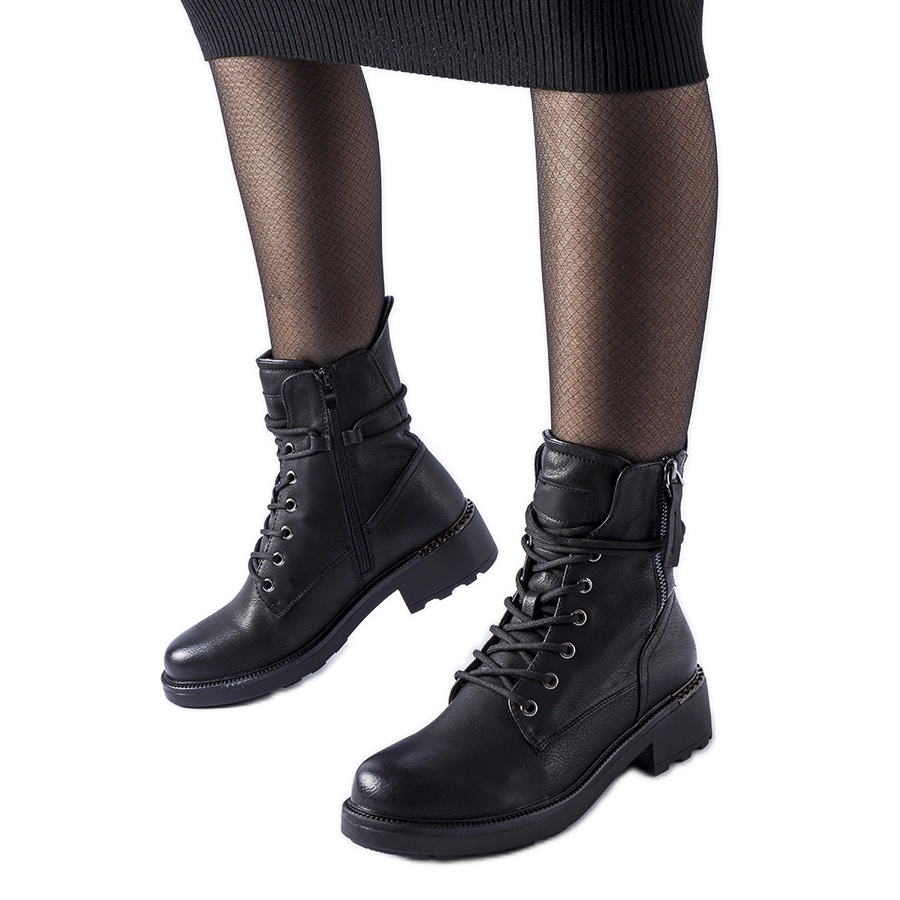 Inna marka Czarne botki z ozdobnym suwakiem Emarese
