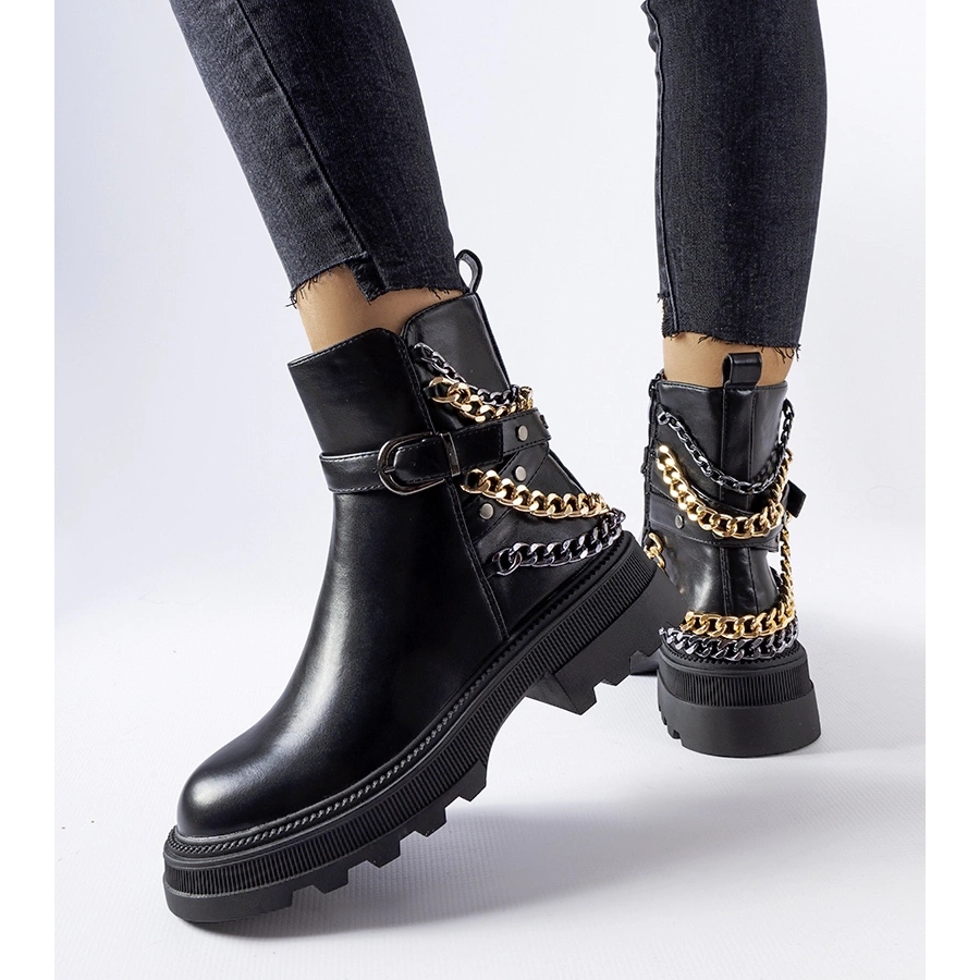 Inna marka Czarne botki z ozdobnymi łańcuchami Bonenfant