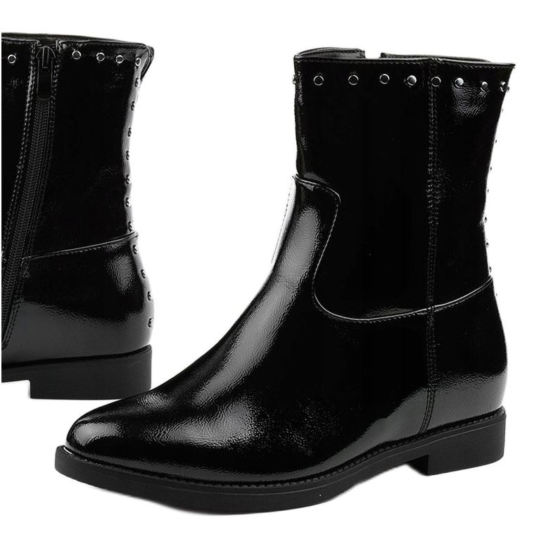 Szczegóły: Czarne botki z ukrytą koturną i litami Forget