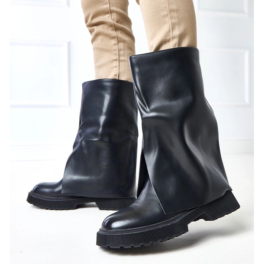 Inna marka Czarne botki z wywiniętą cholewką Rozalia