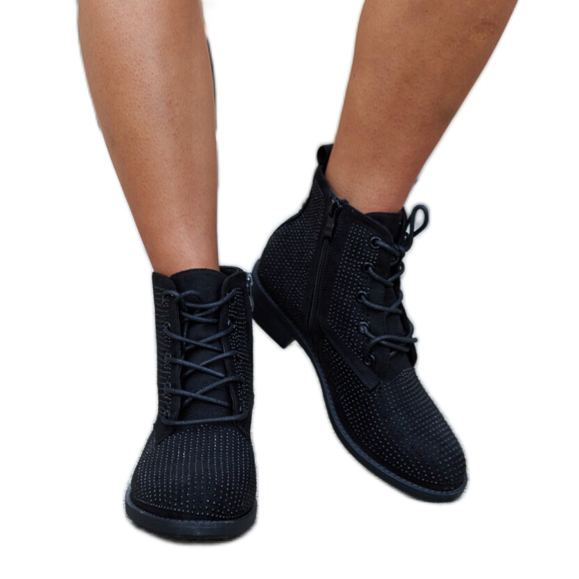 Czarne botki damskie Melisurgo zdobione cyrkoniami — model CN-029