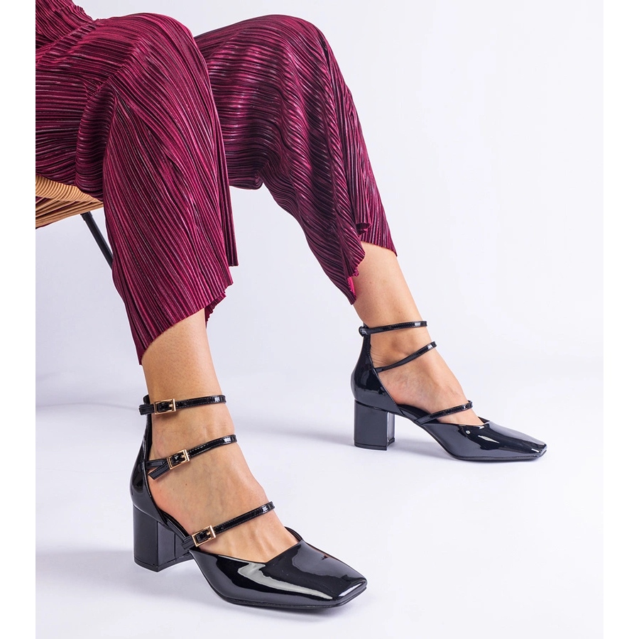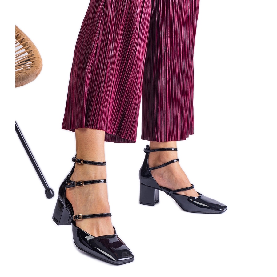 Inna marka Czarne czółenka lakierowane na słupku ze sprzączkami