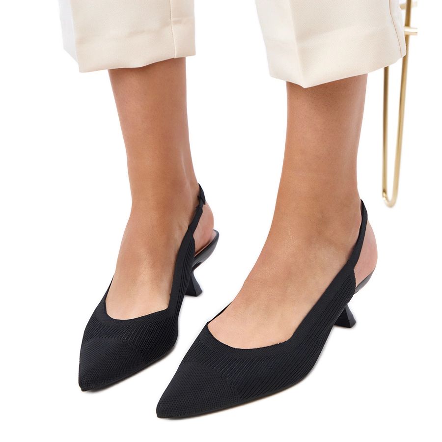 Inna marka Czarne czółenka materialowe na niskim obcasie Cassie